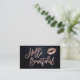 Ett modernt, snyggt affärskort med eget namn och modernt handskriftsformat med stil elegant-penseltypografi som säger Hej vackert i faux-ro-guld-folie på ett trendig och elegant svart vattenfärgsbakgrund med en ro guld-läppar-. Om du behöver någon anpassning, tveka inte att kontakta mig