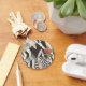 Ett 1950-tal stil Blonde i en snygg Black & White-utrustning mot en Zebra tryck-bakgrund ger en Roligt, Retro Nyckel-kedja.
