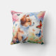 Vattenfärgning av en vidsträckt hund omgiven av blommor och fjärilar.