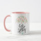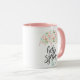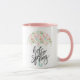Söt säsong mugg har ett färgstarkt paraply för blommigt med texten "Hej Vår" i det moderna skriptet