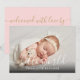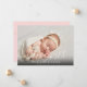 Hej Världen manus babyflicka rosa foto födelse meddelande med elegant skriptmeddelande. Dessa söta födelse meddelande kort är ett perfekt sätt att låta alla veta din spännande nyhet. Anpassa framsidan med ditt babys foto och namn. Baksidan har ett vackert skript meddelande tillsammans med ditt personliga tack meddelande och födelse statistik. Designad av Thisisnotme©
