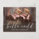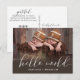 Dubbla gratulationer! Kalligrafi "hej världen" med statistik på baksidan av vykortet. Platt kort tillgängligt i denna design. Se den här samlingen.