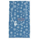 En Segce of Life and Delight presenter Hej, Winter Wonderland-presentsäckar. Påsarna har en snögubbe som är dekorerad med vit snöflingor, rosa och blå bakgrund. I presentsäckarna i snögubbe finns också en blå hatt och halsduk.
