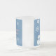 Hejen Segce of Life and Delight presenter, Winter Wonderland frosted glass kaffe koppar, med snögubbe dekorerad med vit snöflingor, rosa och blå bakgrund. Snögubbe mugg har också en blå hatt och halsduk.