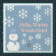 En slice of Life and Delight presenter Winter Wonderland stone underlägg med ett snögubbe dekorerat med vit snöflingor, rosa och en blå bakgrund. Underläggen i snögubbe har också en blå hatt och sjal.