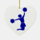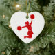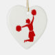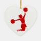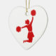 Denna hjärtaShapeprydnad presenterar silhouetten av en flicka i bästa, och kjolen, som hon rymmer en pom i varje, räcker stund i mittet av ett cheerleading hopp.
