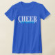 Hejaklacksledaren övar skjortan i vit och blått med tillbaka handspringsilhouettes. Skjortan är perfekt för jubel, eller tumblingen övar.