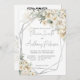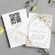 Alla vita teman för inbjudan till blommigten för vit blomma i ram med bröllop-silver hämtas omedelbart, för alla vita temade bröllop med QR-osa längst bak, i en inbjudan.