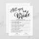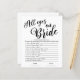 Gör din möhippa roligt och minnesvärd med Ögonen på spel med enkel Möhippa. Det här underhållande och interaktiva spelet är designat för att ge dig skratt, glädje och lite vänskaplig konkurrens till firande. "All Ögon on Bride"-spelet uppmuntrar gästerna att fokusera på bruden, besvara frågor eller utföra uppgifter som rör henne. Det är en isbrytare för perfekt som sammanför alla. Följ instruktionerna och gör det här spelet lämpligt för alla åldrar. Ingen komplicerad regler, bara ren roligt som alla kan njuta av. Spelkorten har en ren elegant som kompletterar alla möhippor. Mjuk, feminin färg och smakfull typografi tillför en något sofistikerad upplevelse.