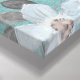 Kanvastryck med tryckt vit typografi på texturerad akvaribakgrund omgiven av vattenfärgblommor, med välkänd vers från romer 8:28, ".. All sak arbetar tillsammans för bra för dem som kärlek Gud.."