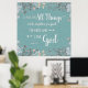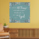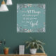 Poster med tryckt vit typografi på texturerad akvaribakgrund omgiven av vattenfärgade blommor, med välkänd vers från romer 8:28, ".. All sak arbetar tillsammans för bra för dem som kärlek Gud.."