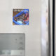 Denna söta lilla baby orangutan njuter av att leka med sina tutar och känner sig trygg i sitt sovboende på OFI-vårdcentret på Borneo, där 350 föräldralösa orangutaner kommer att vårdas på ett lovande sätt tills de kan överleva på egen hand i regnskogen Det tar ungefär åtta år innan en orangutan är gammal nog att friges.Stöd till bevarandet av vilda djur med denna unika magnet. Du kan hjälpa till med sparan av denna utrotningshotade art genom att främja en föräldralös eller donera för att hjälpa till att köpa regnskogsmark som ska reserveras som frigöringsanläggningar. Konstnären är inblandad i orangutan conservarion och användor 100 procent av sina vinster på detta och andra orangutanartiklar för att stödja OFI:s arbete, vars grundare påbörjade sitt banbrytande arbete på tidigt 1970-talet. Läs mer på www.orangutan.org