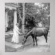 Vintage foto av Helen Keller, fullt-length porträtt stod på gräsmatta Holding Reins to a horse, 1907. Originalmedium för LOC: fotografiskt tryck.