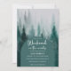 Helg i skogen. Rustik Möhippa med vattenfärg, rökig gräs träd-skog och modern typografi med elegant typsnitt. Texten kan lätt vara en personlig för en unik och snygg utformning för din speciella dag