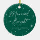 Modern helgdag-fotodekoration med "Gift och ljus" som visas i ett handskript som omges av en gräns av vita stjärnor mot en grönt bakgrund. Anpassa utsmyckningens framsida genom att lägga till ditt namn och året. Baksidan av prydnadsfunktionerna i ditt foto från bröllop skapar det perfekten för din första jul som gift par.