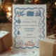Den här festliga designen har en charmig doudle-stil-linjekonst i rött och blått, som visar den klassiska julen inslag som gräs, grenar, poinsettias, prydnadsföremål och en vintage pickupare lastbil. De handritade illustrationerna ger en lekfull men nostalgisk beröring, perfekt för ett mysigt och vismiskt firande.