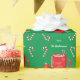 En Helgdag av festlig grönt som är papper med mönster på en röd kakao mugg som är täckt med marshmallow och några polkagrisar. Personlig med din familjs namn.