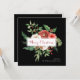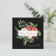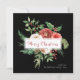 Det här vackra fyrkantiga helgdag har vattenfärgade blommor med elegant med grön bakgrund på svart bakgrund med God jul i röd text. Kortets baksida är en enkel svart som matchar framsidan.