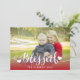 Helgdag Blessings | Helgdag Fotokort - Rött. Elke Clarke © Övrigt stilar och färg finns på www.zazzle.com/epclarke. Vitt skriptteckensnitt med orden "Blsed" med hjärteövertäckningsdesign med rött ombre-effekt. Ett perfekt sätt att visa ditt uppskattade familjefoto. Ett Julhälsningar kort som din familj och dina vänner kommer att ta hand om. Röd och vit rand på baksidan av kortet kan ändras på begäran.