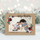 Prisvärda helgdag för utskrift av anpassningsbar med enkla mallar för anpassning. Den här festliga designen har elegant vattenfärgsfärg blommigt gräns i rött, grönt och burgundy färg på en papper bakgrund med säckkraft. I texten står "God jul" i ett modernt kalligrafiskt skriptteckensnitt. Anpassa den med foton, namn, årstext eller annan anpassningsbar. Inuti finns det utrymme för ytterligare foton och anpassningsbarnas meddelande. Använda designen verktyg för att redigera texten, lägga till fler foton och skapa en unik utformning av ett slags helgdag-gratulationskort.