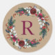 Helgdag Blommigt - krans Monogram Runt Klistermärke