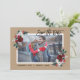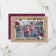 Prisvärd anpassningsbar utskriven Spara datumfotokorten med enkla mallar för anpassning. Den här festliga designen har elegant vattenfärgsfärg blommigt gräns i rött, grönt och burgundy färg på en papper bakgrund med säckkraft. Texten lyder "Spara datumet" i ett modernt calligraphy-skript. Anpassa den med din foto- och bröllop-information. Omvänd sida har plats för ytterligare foton eller text. Använda designen verktyg om du vill redigera texten, lägga till fler foton och skapa ett unikt fotokort av typen bröllop spara datum.