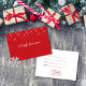 helgdag-presentcertifikat med elegant som faller snöflingor på röd bakgrund med chic-vit skripttypografi. Lägg till informationen på motsatt sida.