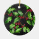Helgdag Chalk Grönt Holly och Red Berries Gren Julgransprydnad Keramik