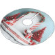 En festlig helgdag med en vit podium med en röd och vit, randig arkway. Arken är dekorerad med en lush garland av grönt löv, röda prydnadsföremål och guld, och är täckt med en festive Red bow. Två minigars Julgranar, med röda prydnadsföremål, flank podiet. En glatt figurin i snögubbe och Jultomten står bredvid podiet, omgiven av omslaget presenter i olika storlekar. Bakgrunden är en seren, ljusblå