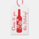 Ge är den här julhelgens gåva med de här söta och festliga märkrna med silhuetten från ett flaska och roligt snöflinggrafik från vin. Mörkande, handskriven text sänder ett lycklig-meddelande i ljust rött. Baksidan av den här presentinformationen har "till" och "från" blanksteg till skriva i presentinformationen. Gör ett underbart komplement till en värdinna-gåva från vin eller något flaska i sprit.