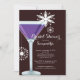 Modern inbjudningskort för möhippan med ett lila martinistiskt glas med vitt snöflingor. Snyggt möhippa inbjudan för en vinter, julklappar, helgdag möhippa.