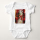 Dalmatien bär en röd halsduk på en röd plaibakgrund.