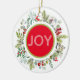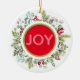 En enkel och modern Julhälsningar på en underbar keramisk prydnadsprodukt. Med en glad vattenfärgsandedräkt med ett budskap om helgdag JOY! Denna lilla träd-trimmare är anpassade med ert textval på utsmyckningens baksida. Lägg till ett inspirerande budskap eller ett speciellt datum för att göra detta till en mycket unik och personlig gåva. Fred, kärlek och glädje för er denna jul och alltid.
