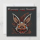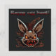 Det här Påsk-kortet är ganska krångligt och humoristiskt, med en zombie-tittar bunny som ser ut som om han kom rak ur en skräckfilm. Han har gult ögon och ett djävulskt skratt. Kortets bakgrund är en mörk färg som förstärker scenens skrämmande stämning. Ovanför bunny står frasen "Lycklig Egg Hunt" skriven i stort brev, med ett ganska roligt typsnitt. Trots den något morbida sidan av kaninen är budskapet fortfarande roligt och påminner om andan i den traditionella jakten på Påskägg.