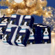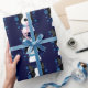 Nyckfull och rolig helgdag för vinter för blått för Boston Terriersnöflingor som slår in papper