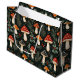 Denna charmerande illustration visar en festlig skogssituation med röd och brun fläckig svamp, löv och pulserande röda bär som är sammanflätade med gräs grenar. Mörkens bakgrund belyser de varma, jordnära tonerna i svamparna och gröntarna i bladens rik, vilket skapar en viskartad men mysigt helgdag. Den arrangemanga leksaken framkallar en känsla av vintermagi, som blandar naturen med en säsong-anda.