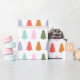 En upprepning mönster av muntert och roligt barmhärtigt träd ger en känsla av stollig och roligt till vilken helgdag eller julklapp som helst. En blandning av söt pastel rosa, aqua och lilac spelar bra med grönt i väster, varm rost och mjuk korall på en skarp vit bakgrund.