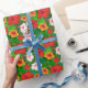 Denna roligt, färglös och hawaiisk helgdag, har en mönster av kornig tropisk strandblad, inklusive handflatan fronder och monstera philodendron löv, tillsammans med ljusa, vackra röda, vita och guld hibiscus blommor, en skarp, festlig utformning för att slå in dina helgdag.