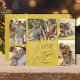 Helgdagskorten för multifotomul har namn och ord God jul i chic guld på gult guld. Ladda bara upp dina favoritfoton från familjen och lägg till din familjeanpassning på baksidan. Välj Projektionsyta för tyngsta pappra och HD-kvalitet för bästa fotokvalitet.