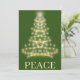 Behålla i kontakt med dem du kärlek i julhelg genom att skicka det här kortet till dem. Den här julkortsdesignen har en snygg bakgrund med en stiliserad grönt guld Julgran med en stjärna överst. Texten på framsidan säger "Peace". Sätt din egen hälsning eller behålla den populära text och trendig som du har tillgång till.