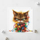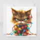 En skurk ingerkatt trasslad i flerfärgad julklapp ljus, perfekt för att fånga upp stressat av helgdag. Ett humoristiskt helgdag-kort för dina kattdjur-vänliga vänner