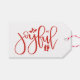 Elegant "glatt" rödskript med julaccent inslag av holly, gåva och stjärnor, märkre för festliga helgdag.