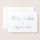 Elegantens manus skapar denna julkortsutformning med silver folie på utsidan och helgdag rött och varmt grått på insidan. Lägg till din familj eller ditt företag namn för ett enkelt och vackert helgdag-kort för familj, vänner och kunder.