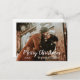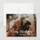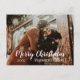 Det här moderna, klara julkortet har ditt personliga foto på framsidan, med ett vitt skript som täcker trendiget. Mallfoto via Pixabay med licens enligt CC0 och måste ersättas med ett eget foto