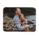 Modern helgdag magnet med fullt-utfallsfoto med "God jul" i ett vitt, handskrivet skriptöverlägg. Anpassa elegantens fotomagnet genom att lägga till ditt namn och året.