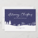 God jul festivkort på en blå bakgrund med gräs träd, renar och snö. Anpassa din familj namn, år och meddelande på baksidan.