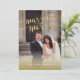 Holidagshälsningar till dina kära blir enkla med det här mångsidiga, enkla helgdag-fotokortet med orden "Gift och Merry" skrivet i ett vitt skript-textöverlägg med en röd kombinationseffekt över ditt favoritfoto från bröllop. Utformning med ELKE CLARKE© Ersätt exempelfotot med eget. Andra fotot med guld ram på baksidan av kortet. Annan färg tillgänglig i lager eller på begäran.