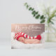 Skicka dina semesterhälsningar till familj och vänner med det här enkla moderna vykortet. Framsidan har ett utfallsfoto med God jul i ett modernt, handskrivet skript med fullt. Anpassa även baksidan med din returadress och en personlig Julhälsningar