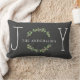Denna stilfulla moderna helgdag kudder särdrag ord "glädje" med en halv kran av färgrika löv och bär. Skräddarsy med ditt efternamn. Kudde färg kan skräddarsy för att matcha din dekor som enkelt är vald ", skräddarsy den" för obegränsade färgalternativ. Besöka modernmatrimonydesigns.com för vår fulla samling av designer.