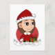 Personligen är utformad för att illustrera en söt, leende lycklig-flicka med brunt hår, flickan bär en Jultomten-kostym med röd hatt och håller en present på vit bakgrund, med anpassade textmall för ditt namn eller meddelande
